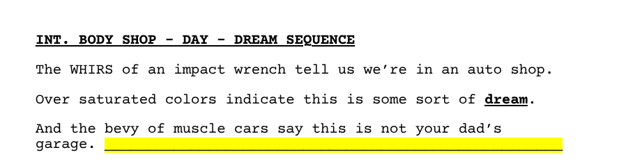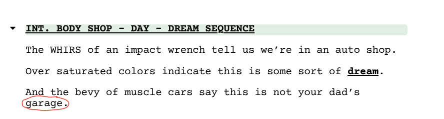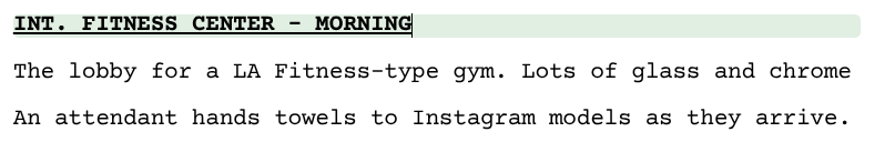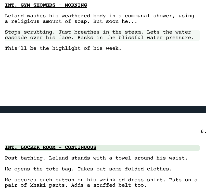 This image captures the bottom of one page and the top of another. And because of the way it’s currently written, a scene heading falls on the top of a new page.